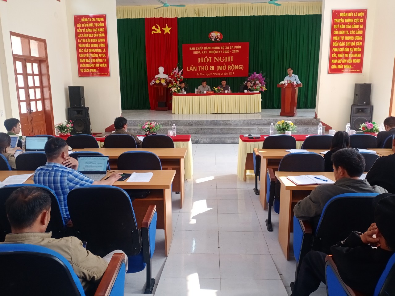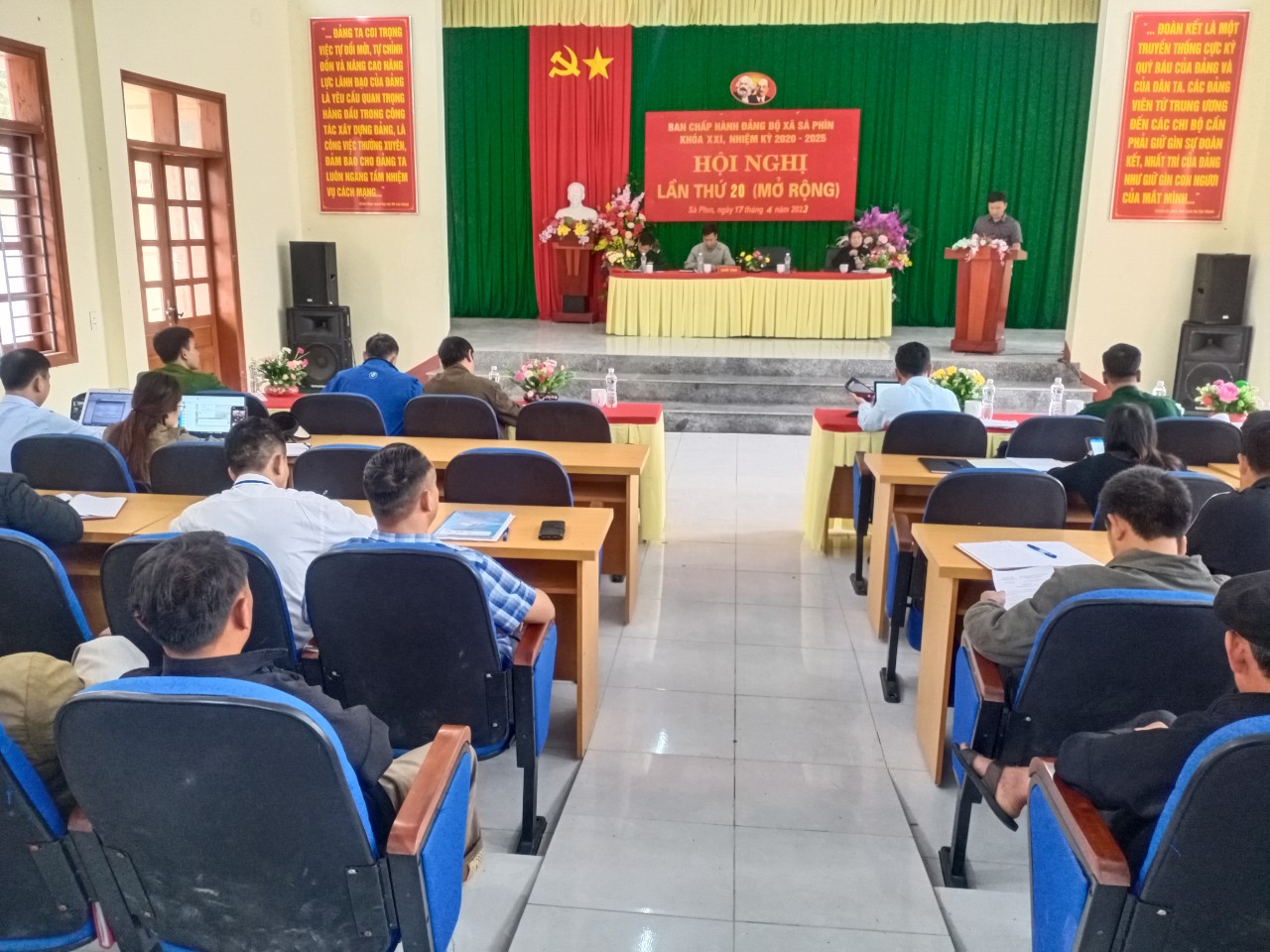 Hội nghị đã được nghe ý kiến phát biểu và chỉ đạo của đồng chí Phạm Quốc Lập-Huyện ủy viên, Trưởng phòng Văn hóa huyện, đồng chí đã đánh giá cao về kết quả đạt được trong quý I năm 2023 mà cấp ủy, chính quyền và nhân dân trong xã đã đạt được, đồng thời nhấn mạnh một số nội dung trọng tâm để cấp ủy, chính quyền tập trung triển khai thực hiện trong thời gian tới đó là: 1. Cả hệ thống chính trị xã đoàn kết, thống nhất triển khai thực hiện tốt các chỉ tiêu Nghị quyết về phát triển kinh tế-vă hóa, xã hội, quốc phòng-an ninh năm 2023 đưa ra. 2. Tiếp tục thực hiện tốt công tác giáo dục tư tưởng, đạo đức, lối sống cho cán bộ, đảng viên, và nhân dân. 3. Chuẩn bị tốt cho hội nghị sơ kết giữa nhiệm kỳ 2020-2025. 4. Triển khai thực hiện tốt Cải tạo vườn tạp. 5. Tiếp tục tuyên truyền thực hiện xóa bỏ hủ tục lạc hậu, xây dựng nếp sống văn minh. 6. Chỉ đạo triển khai thực hiện 3 chương trình mục tiêu quốc gia. 7. Triển khai thực hiện thôn đạt nông thôn mới năm 2023. 8. Tiếp tục thực hiện tốt phong trào vệ sinh đường làng ngõ xóm sạch sẽ…
