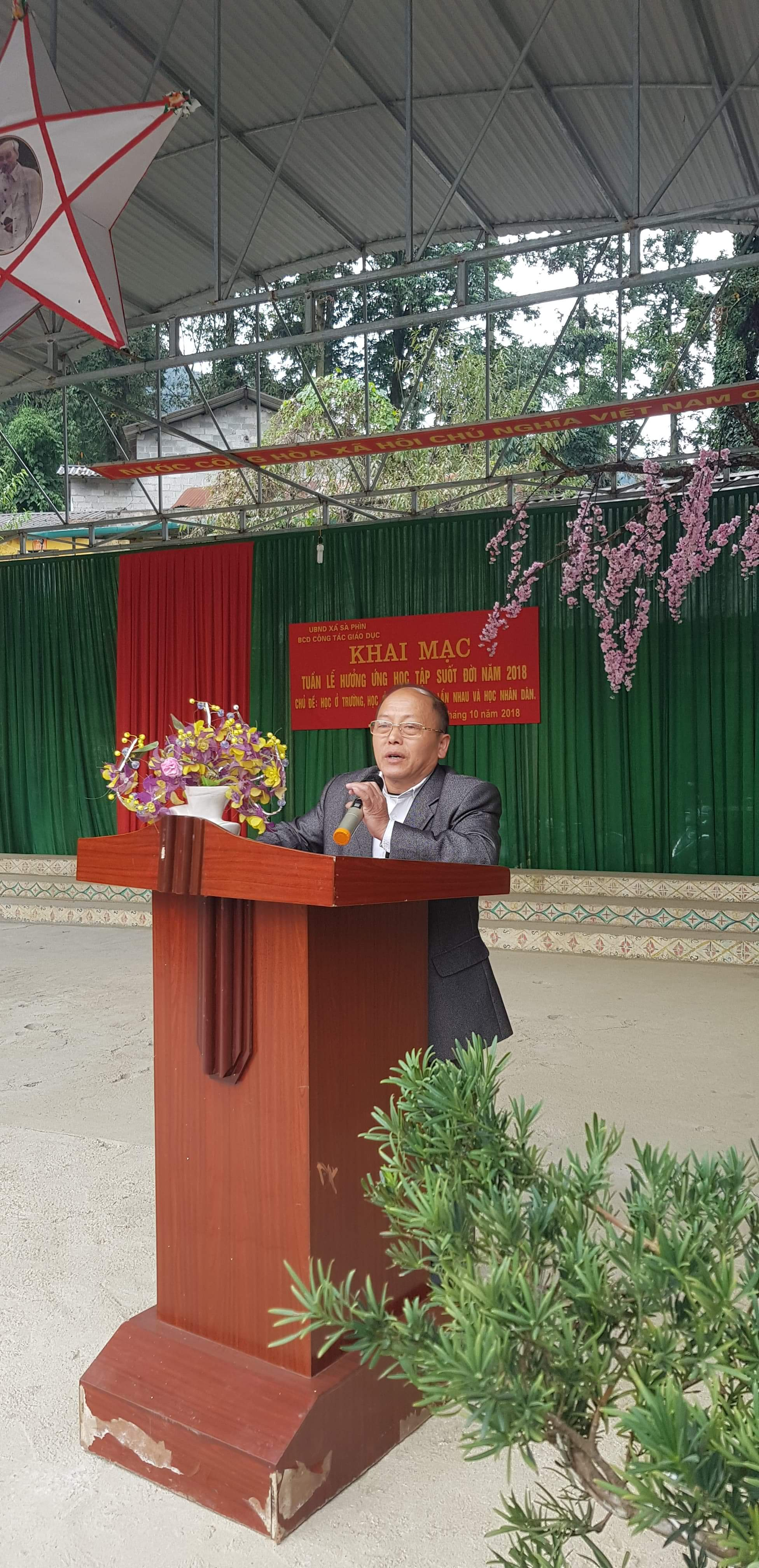 Đại diện Ban Chỉ đạo công tác giáo dục xã đồng chí Sùng Pà Say, phó bí thư Đảng Ủy, chủ tịch HĐND, trưởng ban chỉ đạo phát biểu ghi nhận sự thành công khai mạc Tuần lễ hưởng ứng học tập suốt đời năm 2018 xã Sà Phìn, đồng thời đồng chí cũng đã nhẫm mạnh, trường học tiếp tục tập trung tổ chức các sự kiện, các hoạt động giao lưu, các cuộc thi, các buổi tọa đàm khuyến học và xây dựng xã hội học như: tổ chức các cuộc thi về sách cho các em; trưng bày, triển lãm sách báo, tư liệu phục vụ các sự kiện chính trị, văn hóa, ngày lễ, ngày kỷ niệm lớn của tỉnh, của đất nước; tổ chức thi tìm hiểu, học tập lịch sử, văn hóa địa phương trên địa bàn xã, đặc biệt là tìm hiểu về di tích lịch sử…