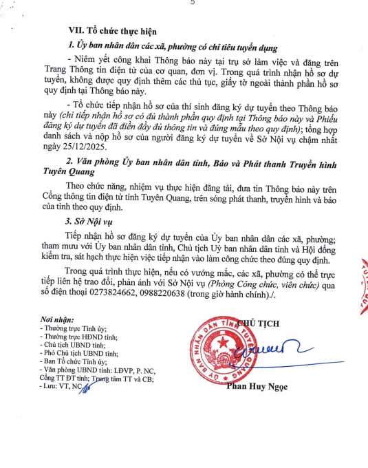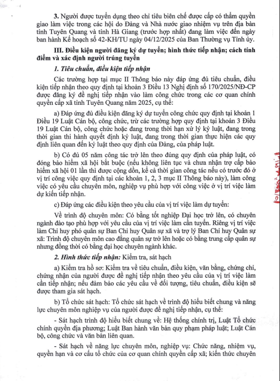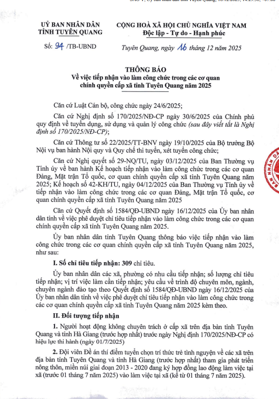 THÔNG BÁO VỀ VIỆC TIẾP NHẬN VÀO LÀM CÔNG CHỨC CÁC CƠ QUAN CHÍNH QUYỀN CẤP XÃ TỈNH TUYÊN QUANG NĂM 2025