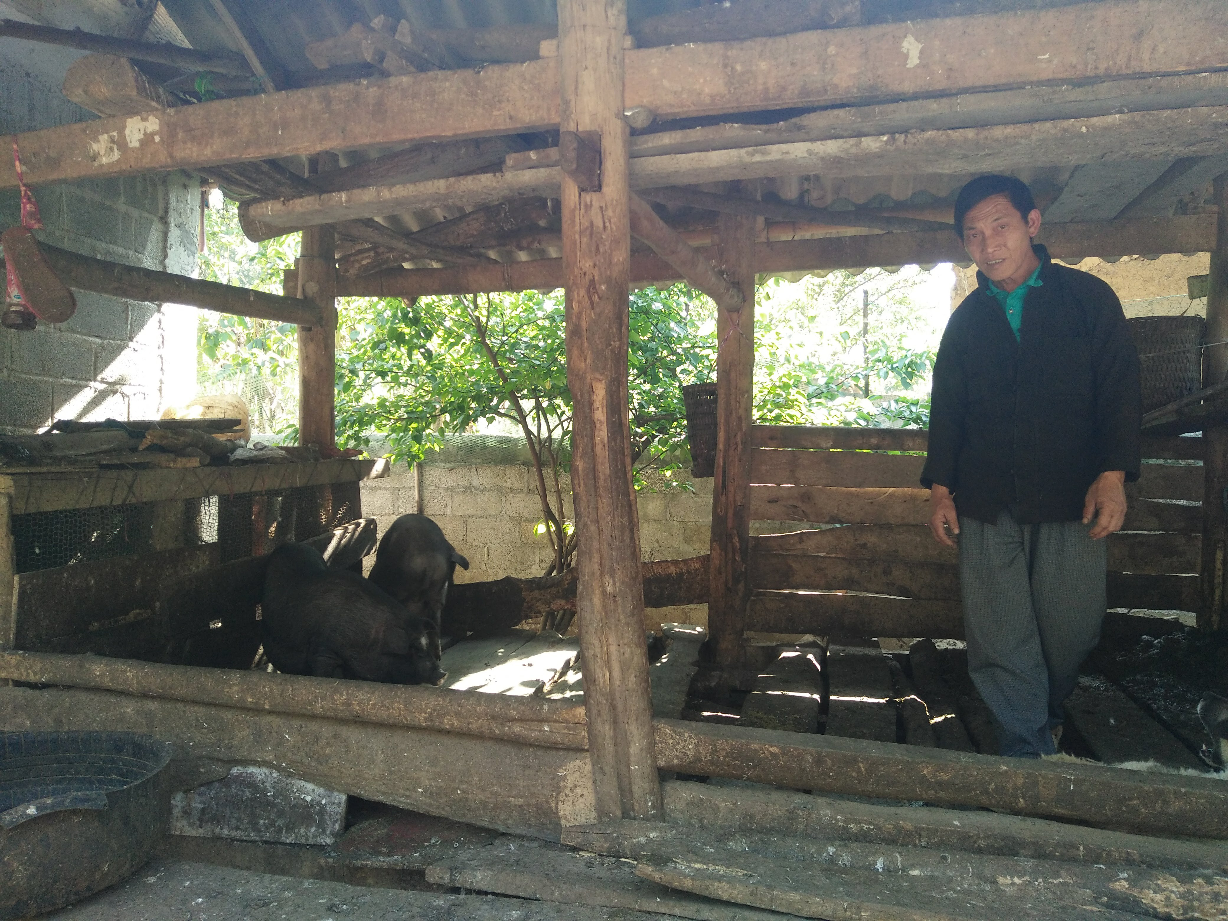 Anh Páo cùng gia đình nuôi 02 con bò hàng hóa trị giá 85 triệu đồng, ngoài ra còn nuôi nhiều con dê, lợn và gia cầm và tham gia may mặc mỗi năm cho thu nhập gần 10 triệu đồng