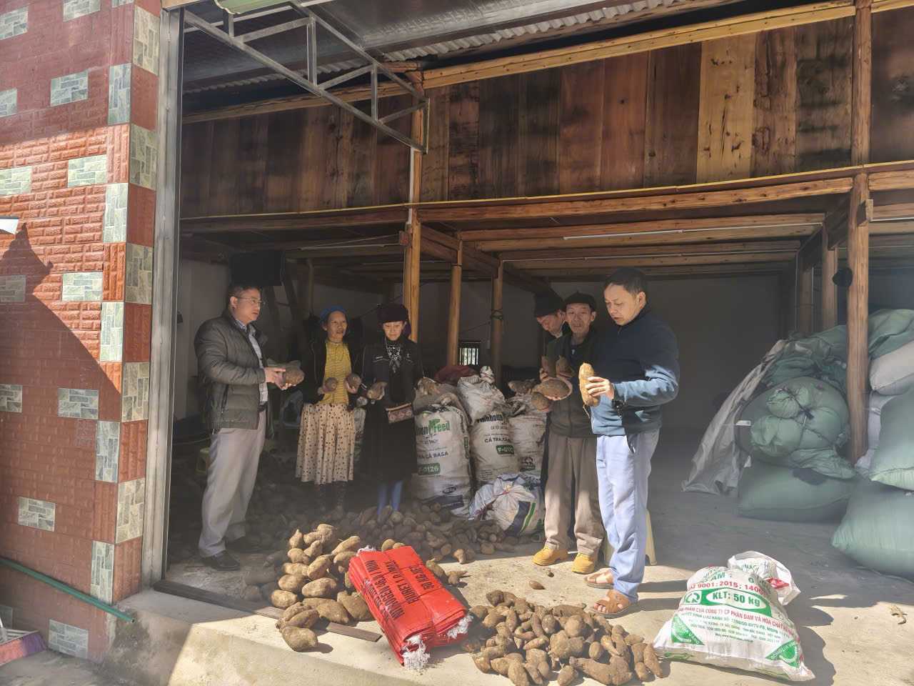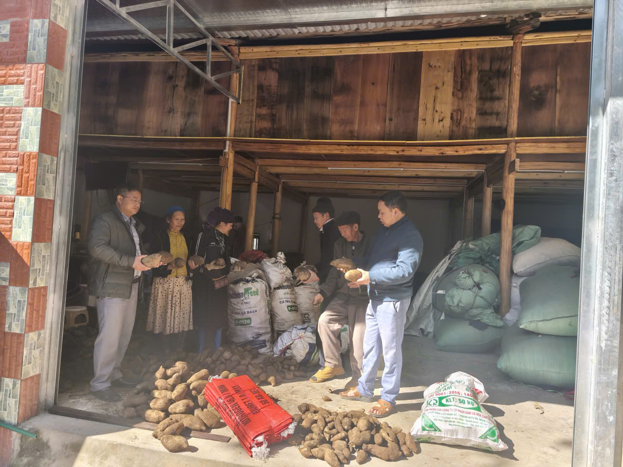 Công tác tiêu thụ: Tính đến thời điểm đã bán ra thị trường 120 tấn qua các đầu mối của xã và các chủ hộ, hiện Phòng Kinh tế đang tham mưu kế hoạch, xây dựng Chương trình, hình ảnh, Video Clip để quảng bá sản phẩm Sâm khoai của xã lên các trang sàn thương mại điện tử.
