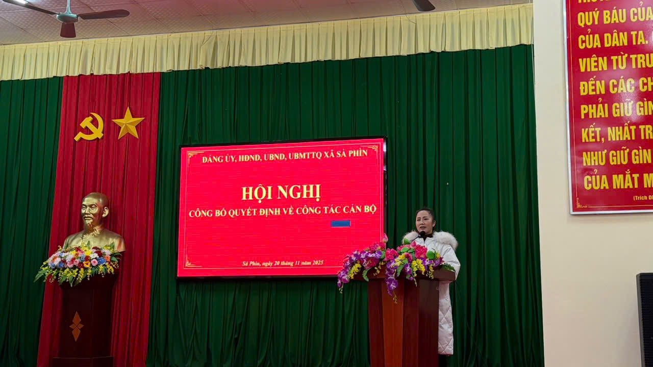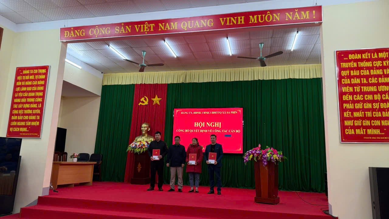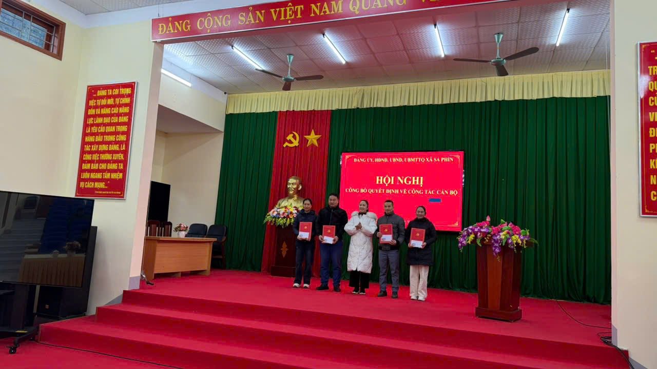 Chiều ngày 20/11/2025 Đảng ủy, HĐND, UBND, Ủy ban MTTQ xã Sà Phìn tổ chức hội nghị công bố quyết định cho cách đồng chí là cán bộ, công chức xã Sà Phìn nghỉ chế độ và chuyển công tác.